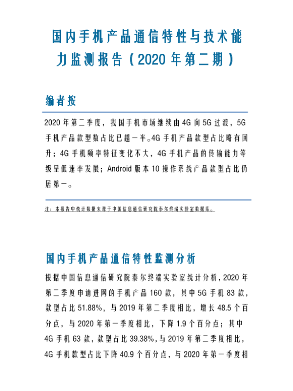 【中国信通院】【20200728】国内手机产品通信特性与技术能力监测报告(2020年第二期)-6页