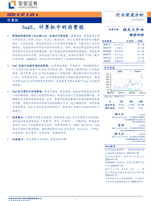 【安信证券】【20200728】SaaS,计算机中的消费股-20页
