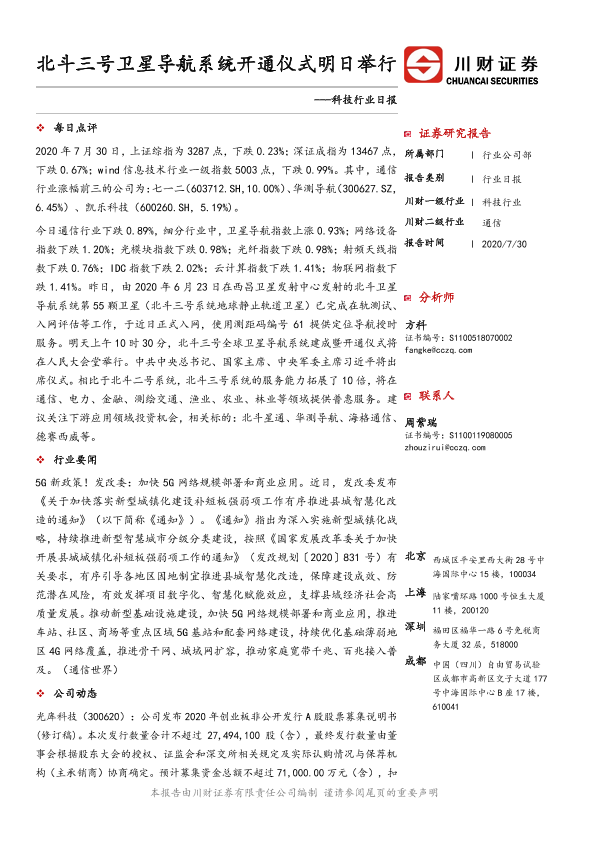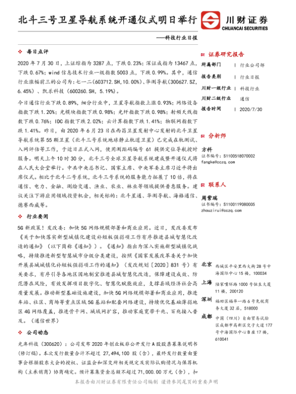 【川财证券】【20200730】科技行业日报:北斗三号卫星导航系统开通仪式明日举行-4页