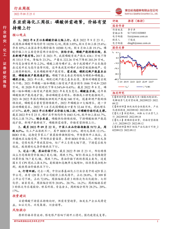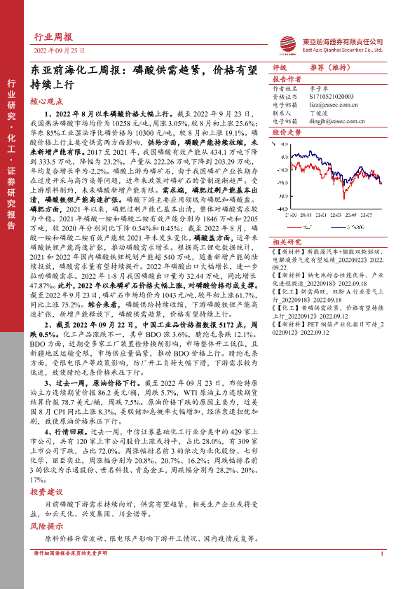 【东亚前海证券】【20220925】化工周报:磷酸供需趋紧,价格有望持续上行-22页