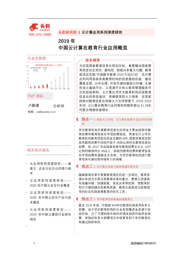 【头豹研究院】【2019】2019年中国云计算在教育行业应用概览-32页