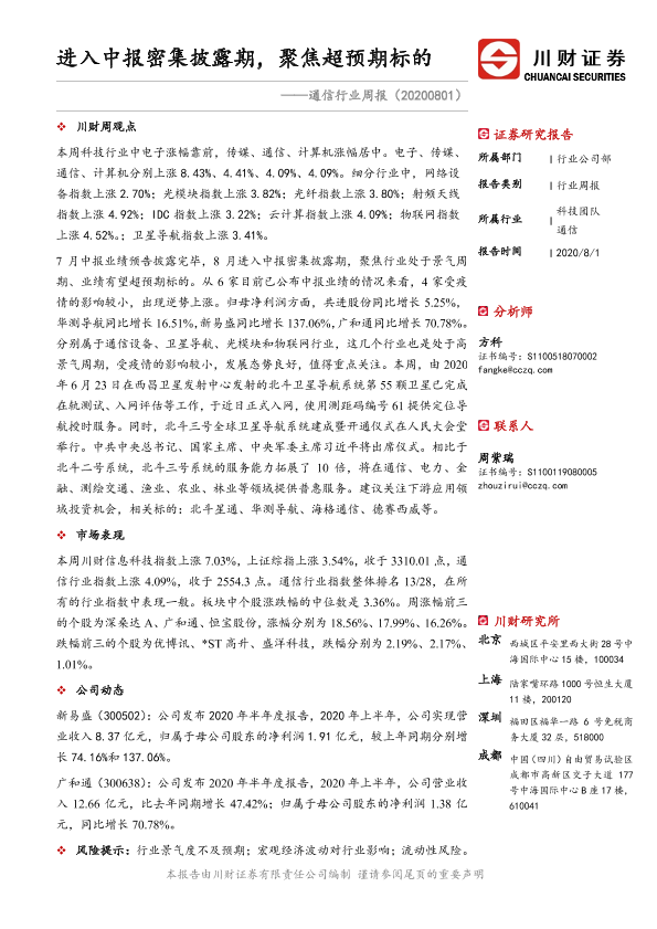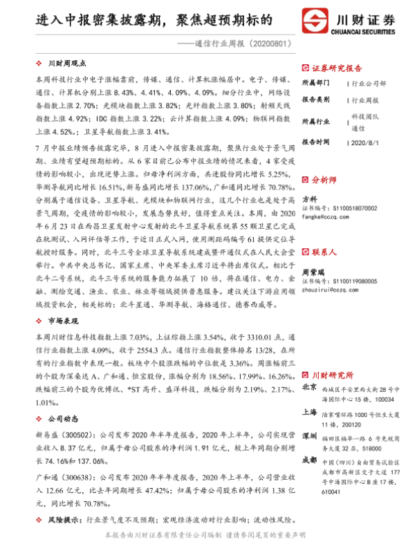 【川财证券】【20200801】20200801-川财证券-通信行业周报:进入中报密集披露期,聚焦超预期标的-10页