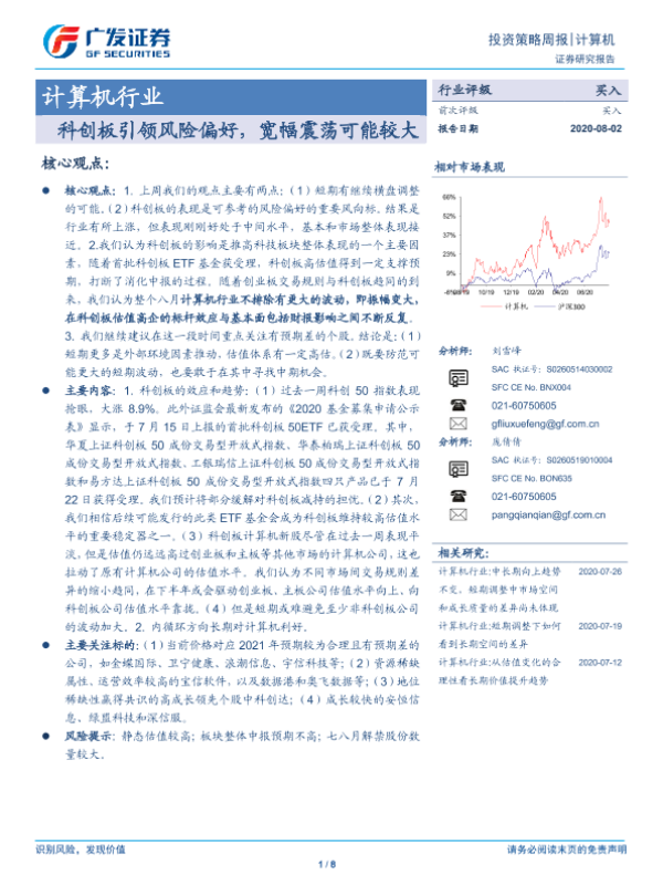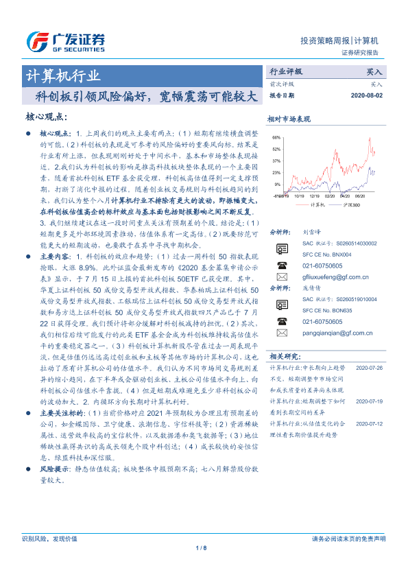 【广发证券】【20200802】20200802-广发证券-计算机行业投资策略周报:科创板引领风险偏好,宽幅震荡可能较大-8页