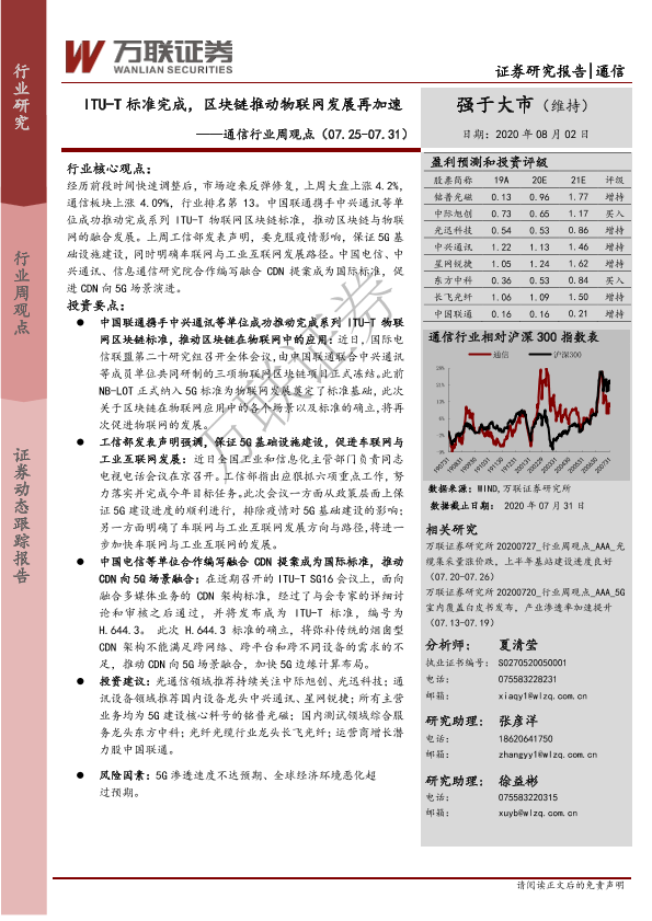 【万联证券】【20200802】20200802-万联证券-通信行业周观点:ITU-T标准完成,区块链推动物联网发展再加速-13页
