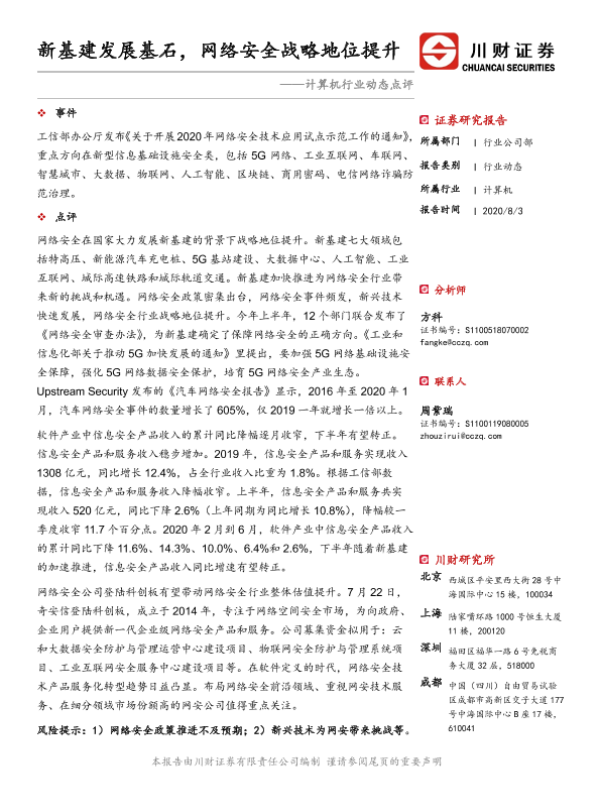 【川财证券】【20200803】新基建发展基石,网络安全战略地位提升-2页