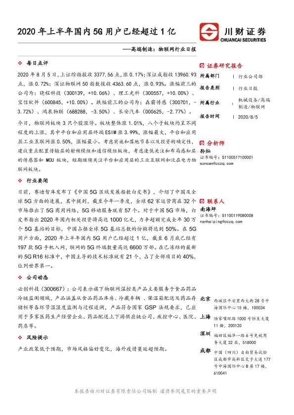 【川财证券】【20200805】物联网行业日报:2020年上半年国内5G用户已经超过1亿-2页
