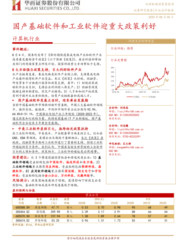 【华西证券】【20200805】计算机行业:国产基础软件和工业软件迎重大政策利好-6页