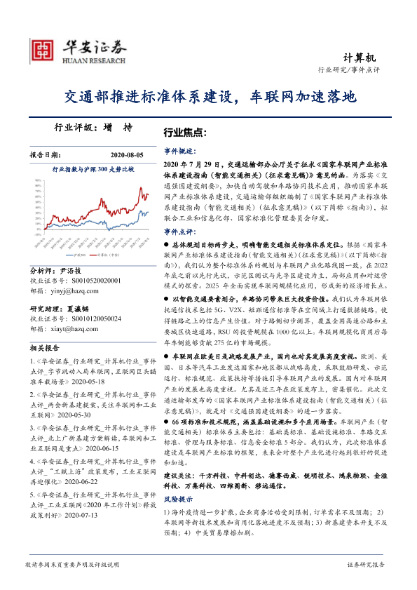 【华安证券】【20200805】交通部推进标准体系建设,车联网加速落地-19页