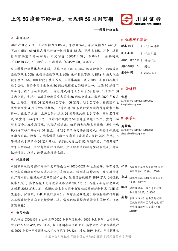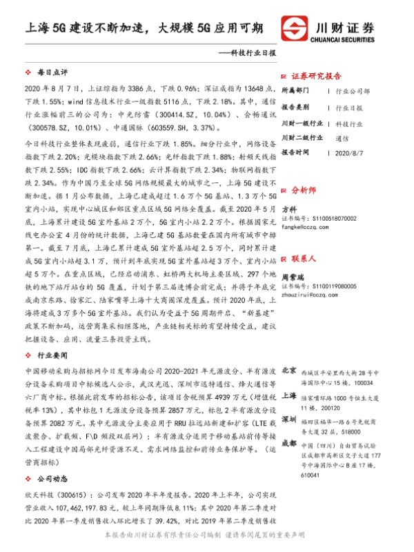 【川财证券】【20200807】科技行业日报:上海5G建设不断加速,大规模5G应用可期-4页