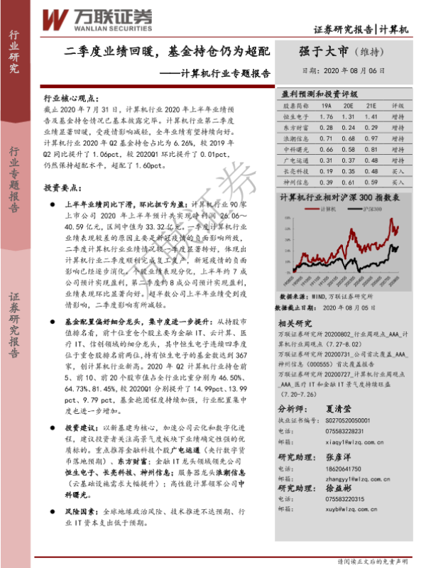【万联证券】【20200806】20200806-万联证券-计算机行业专题报告:二季度业绩回暖,基金持仓仍为超配-17页