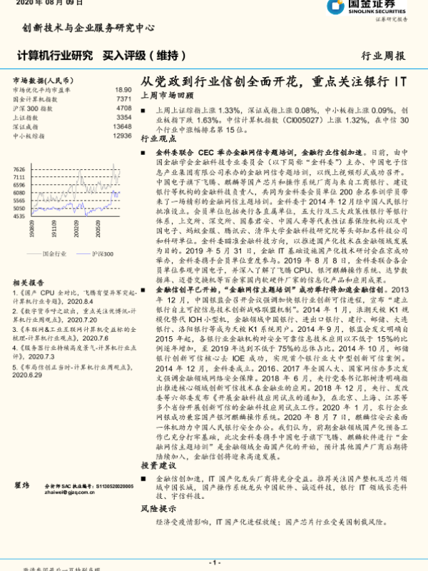 【国金证券】【20200809】从党政到行业信创全面开花,重点关注银行IT-7页