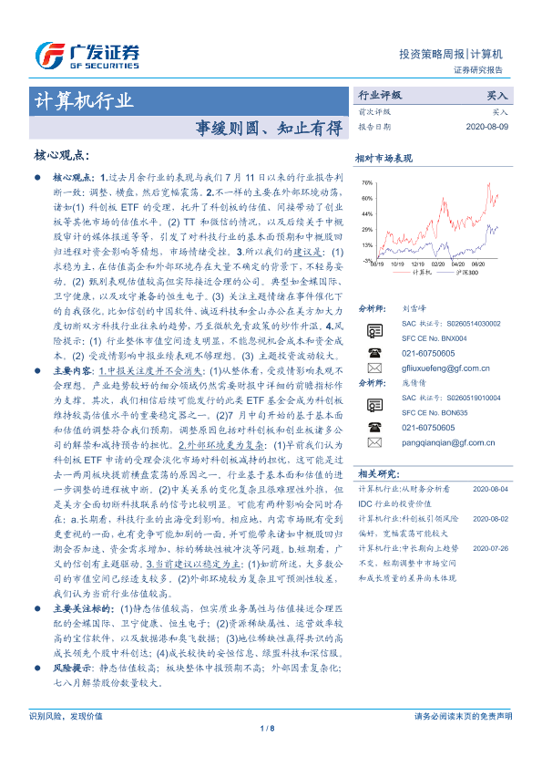 【广发证券】【20200809】20200809-广发证券-计算机行业投资策略周报:事缓则圆、知止有得-8页