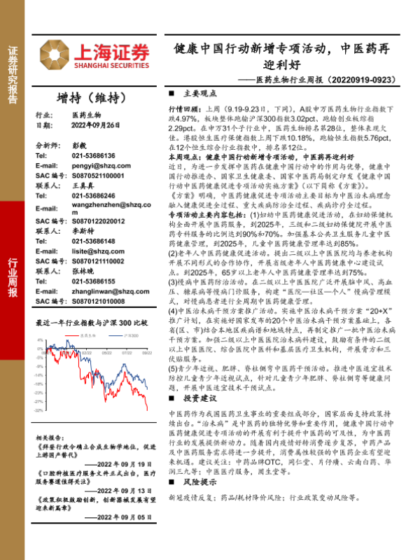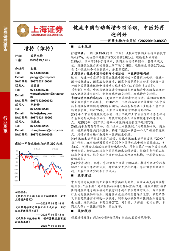 【上海证券】【20220926】医药生物行业周报:健康中国行动新增专项活动,中医药再迎利好20220926-28页