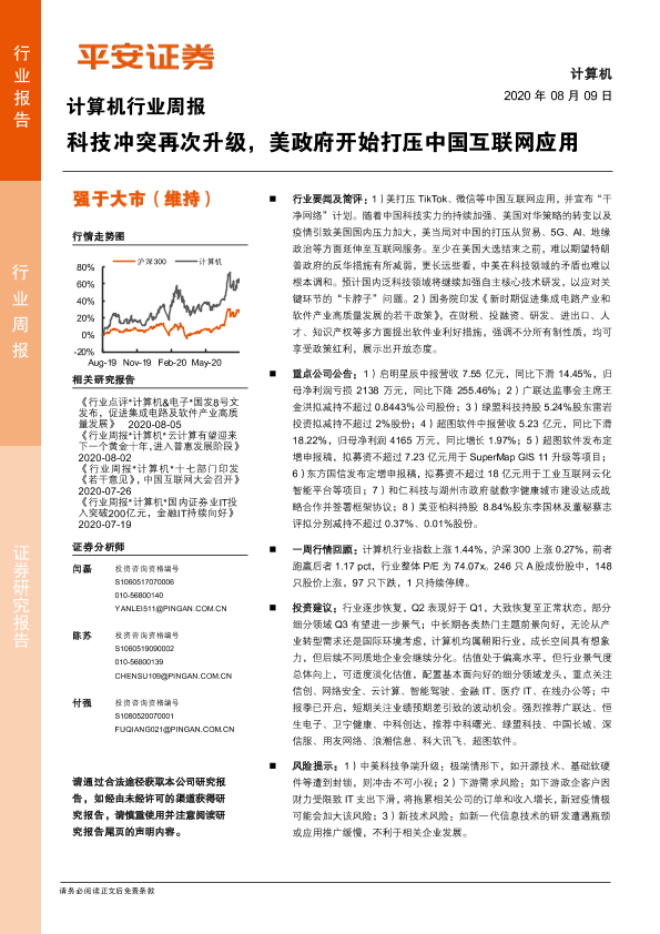 【平安证券】【20200809】计算机行业周报:科技冲突再次升级,美政府开始打压中国互联网应用-5页