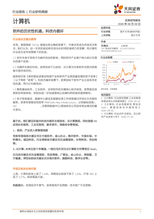 【天风证券】【20200809】计算机行业研究周报:软件的历史性机遇,科技内循环-7页