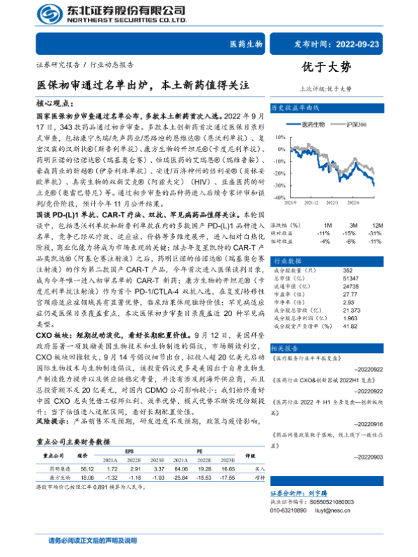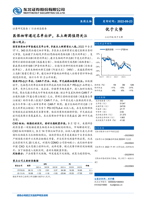 【东北证券】【20220923】医药生物行业:医保初审通过名单出炉,本土新药值得关注-21页
