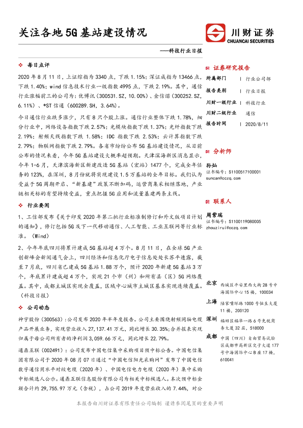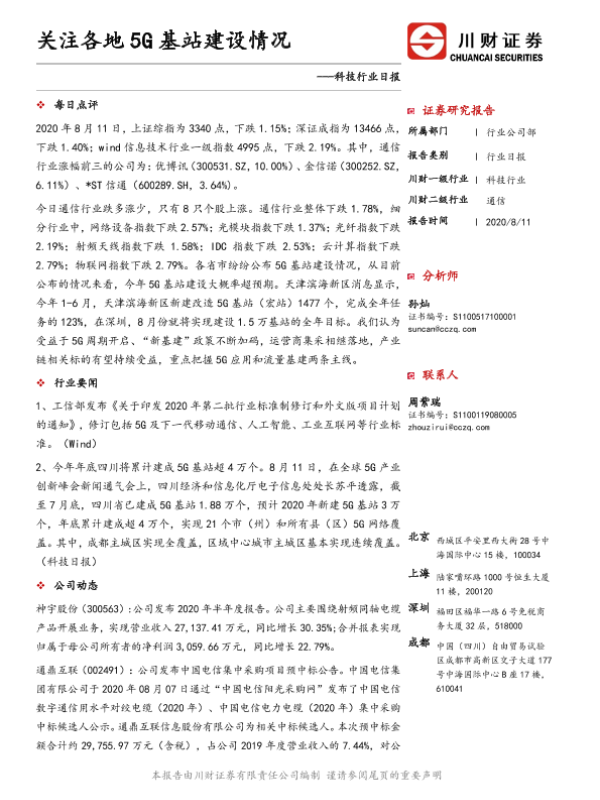 【川财证券】【20200811】科技行业日报:关注各地5G基站建设情况-4页
