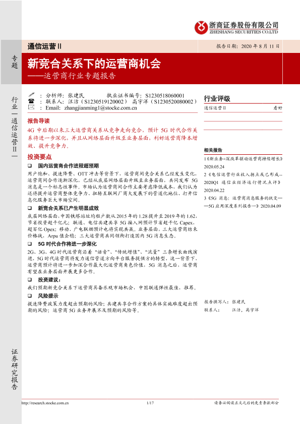 【浙商证券】【20200811】新竞合关系下的运营商机会-17页