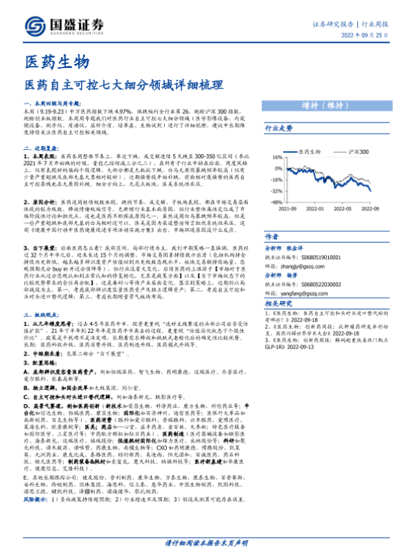 【国盛证券】【20220925】医药生物行业周报:医药自主可控七大细分领域详细梳理-47页