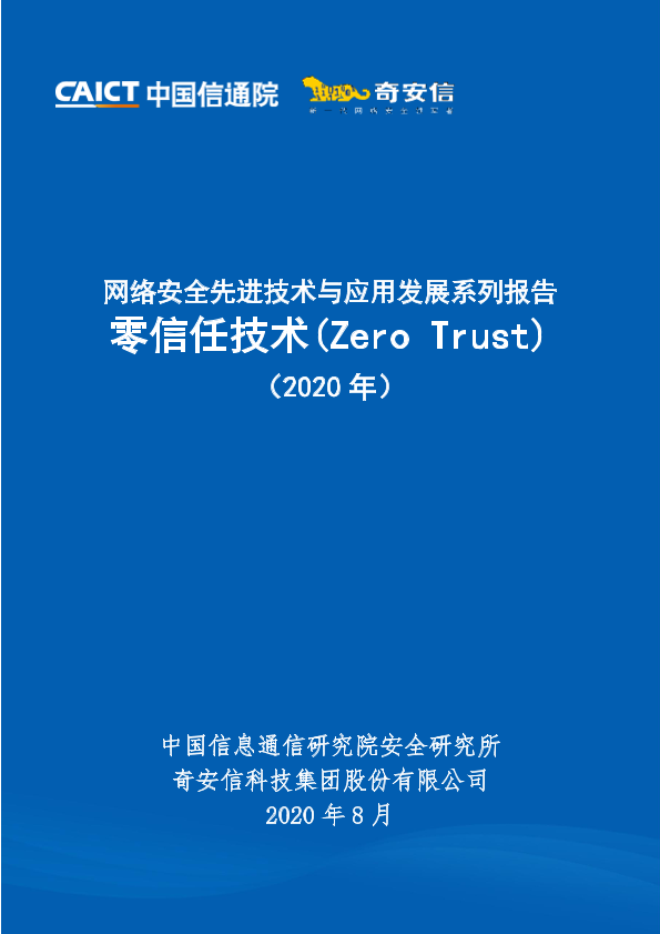 【中国信息通信研究院安全研究所】【202008】网络安全先进技术与应用发展系列报告零信任技术(2020年)-54页