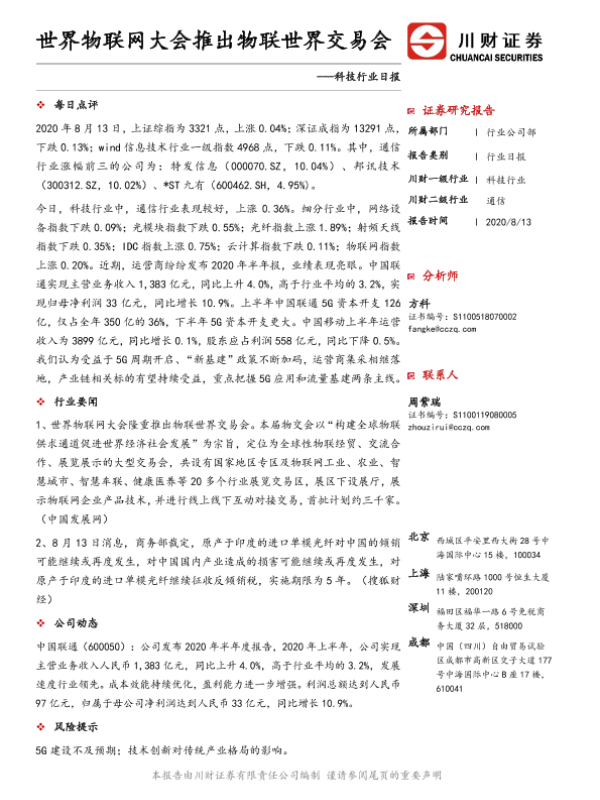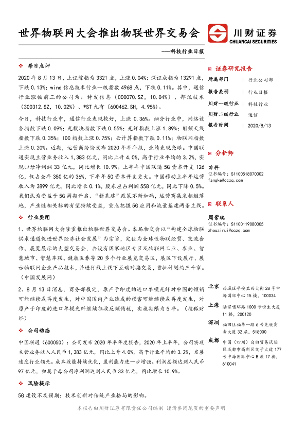 【川财证券】【20200813】科技行业日报:世界物联网大会推出物联世界交易会-4页