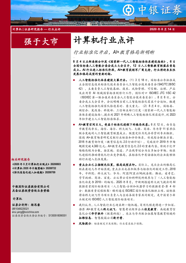 【中银证券】【20200814】计算机行业点评:行业标准化开启,AI+教育格局渐明晰-4页