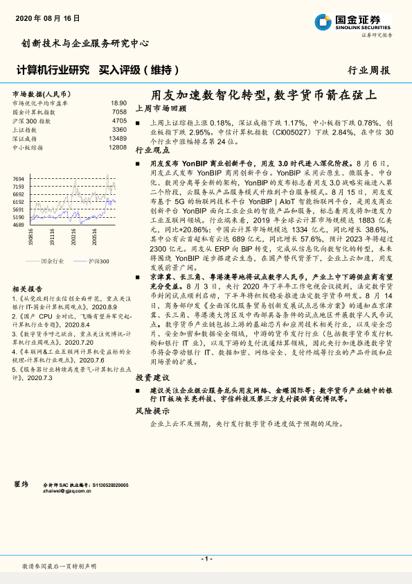 【国金证券】【20200816】20200816-国金证券-计算机行业研究:用友加速数智化转型,数字货币箭在弦上-12页