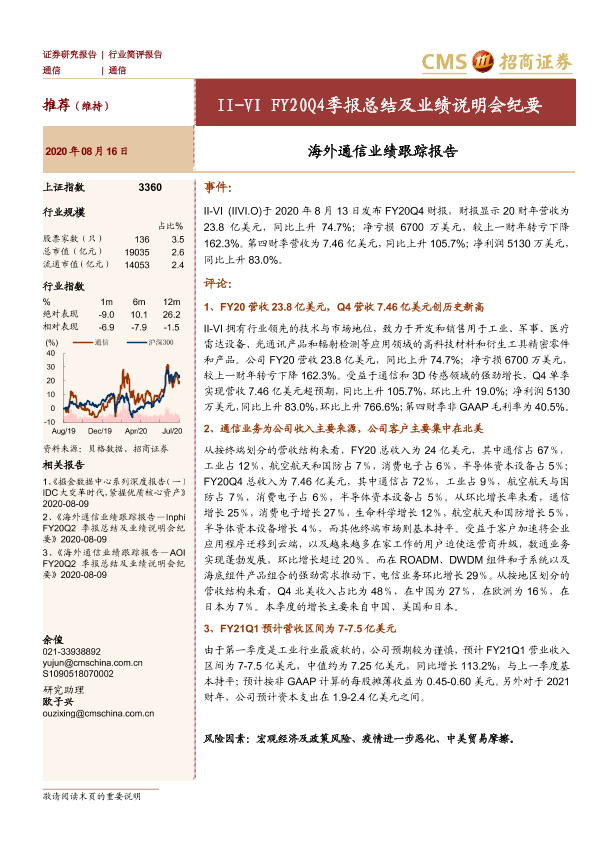 【海通证券】【20200816】20200816-招商证券-海外通信业绩跟踪报告:II-VIFY20Q4季报总结及业绩说明会纪要-15页