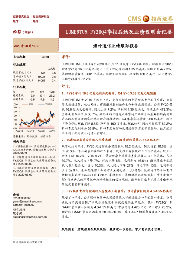 【海通证券】【20200816】20200816-招商证券-海外通信业绩跟踪报告:LUMENTUM FY20Q4季报总结及业绩说明会纪要-13页