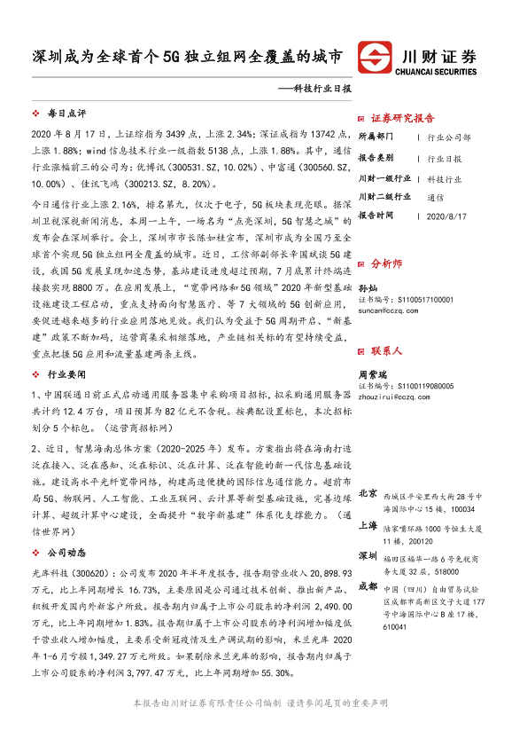 【川财证券】【20200817】深圳成为全球首个5G独立组网全覆盖的城市-4页