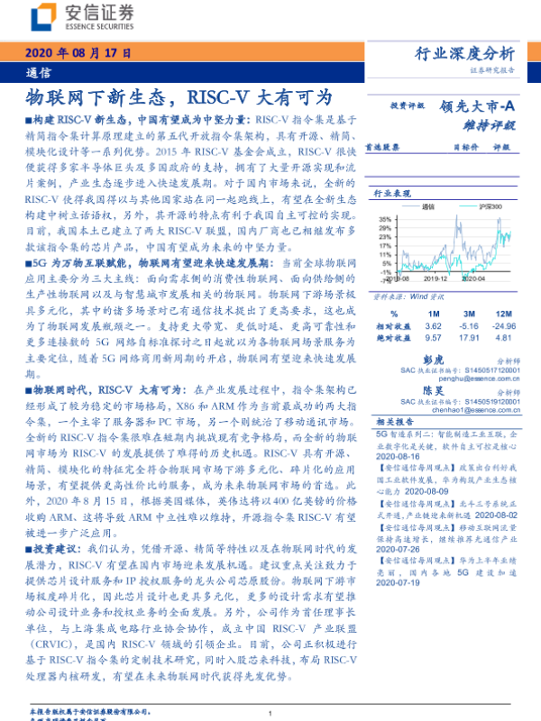 【安信证券】【20200817】通信行业深度分析:物联网下新生态,RISC-V大有可为-22页
