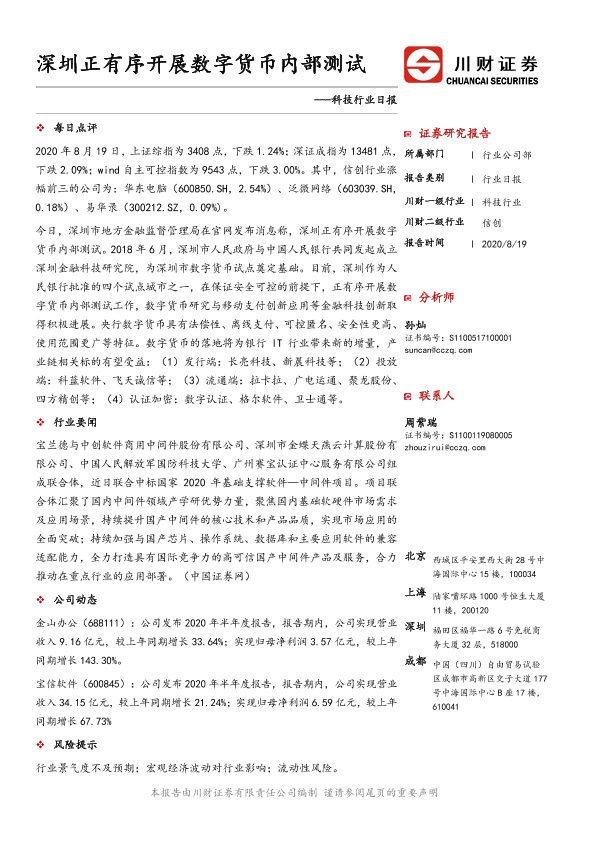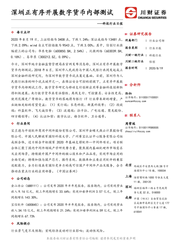 【川财证券】【20200819】科技行业日报:深圳正有序开展数字货币内部测试-3页