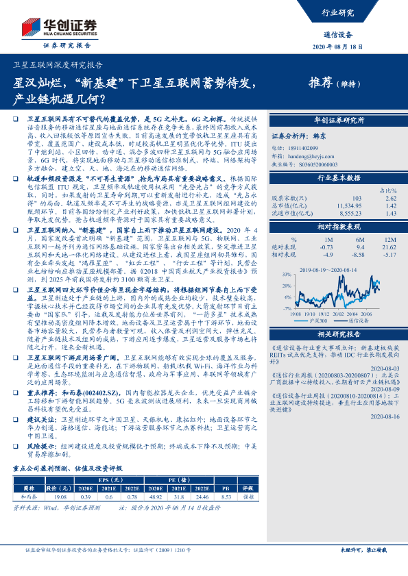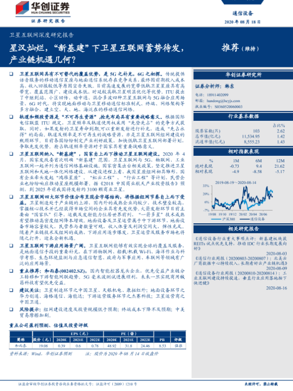 【华创证券】【20200818】20200818-华创证券-卫星互联网深度研究报告:星汉灿烂,“新基建”下卫星互联网蓄势待发,产业链机遇几何?-32页