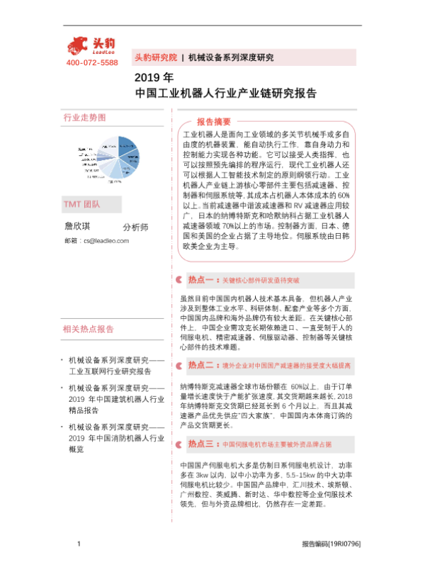 【头豹研究院】【2019】2019年中国工业机器人行业产业链研究报告-32页
