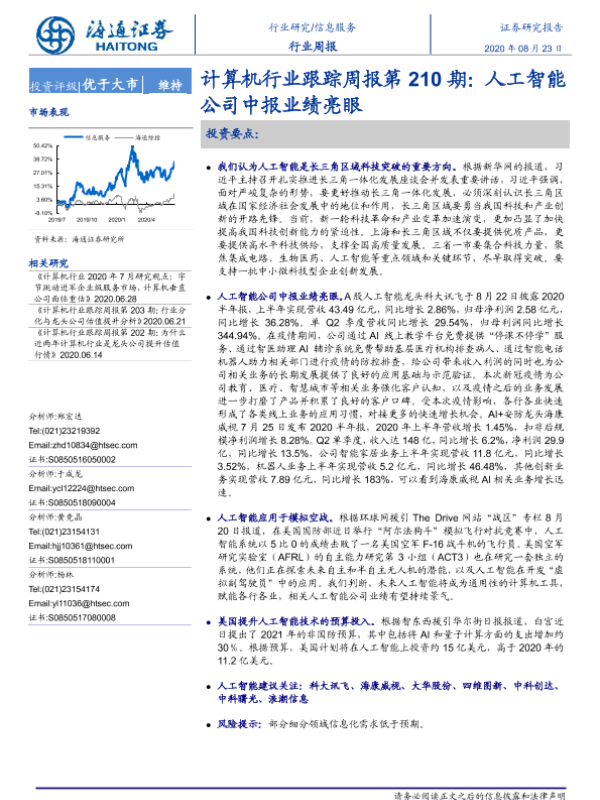 【海通证券】【20200823】计算机行业跟踪周报第210期:人工智能公司中报业绩亮眼-4页