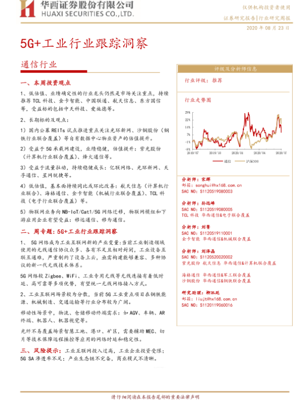 【华西证券】【20200823】20200823-华西证券-通信行业研究周报:5G+工业行业跟踪洞察-7页