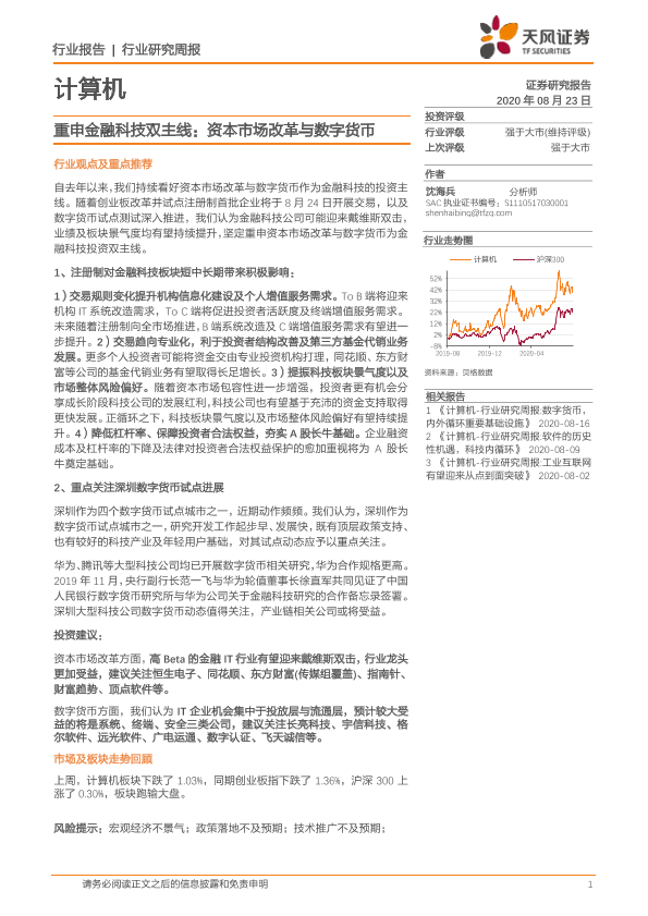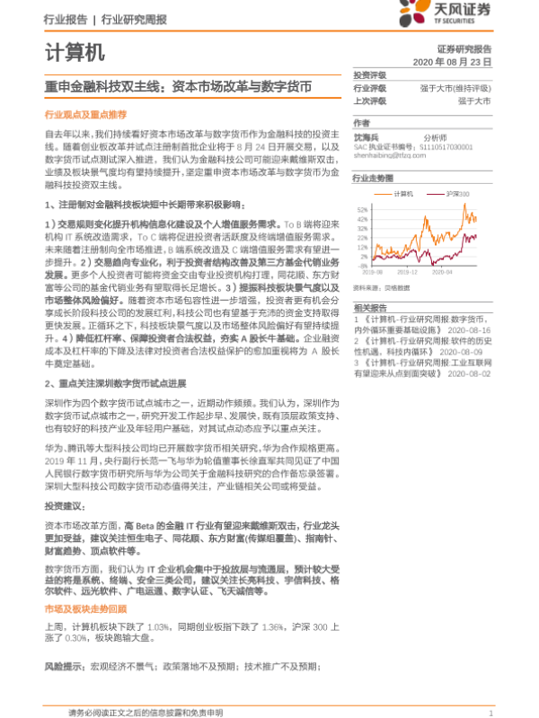 【天风证券】【20200823】计算机行业研究周报:重申金融科技双主线:资本市场改革与数字货币-9页