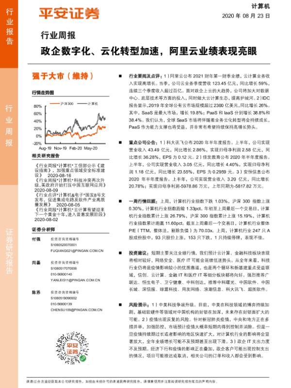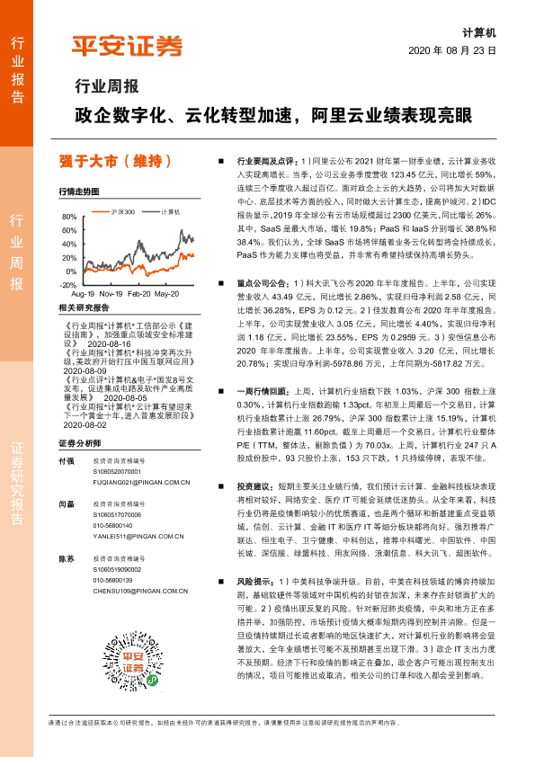 【平安证券】【20200823】计算机行业周报:政企数字化、云化转型加速,阿里云业绩表现亮眼-5页