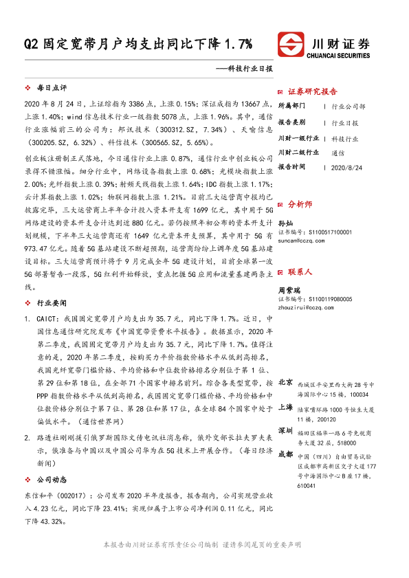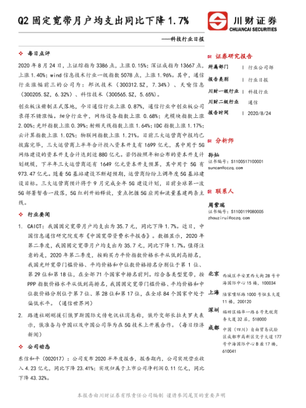 【川财证券】【20200824】Q2固定宽带月户均支出同比下降1.7%-4页