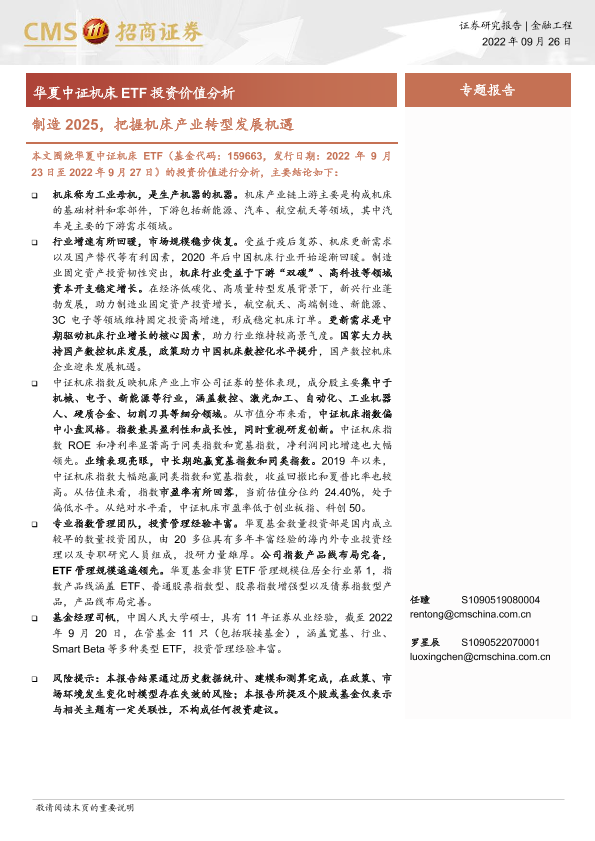 【海通证券】【20220926】华夏中证机床ETF投资价值分析:制造2025,把握机床产业转型发展机遇-22页