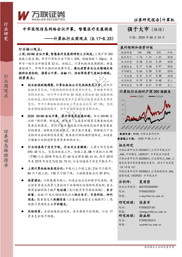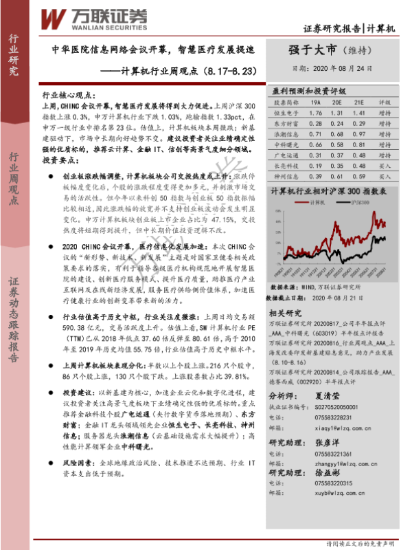 【万联证券】【20200824】20200824-万联证券-计算机行业周观点:中华医院信息网络会议开幕,智慧医疗发展提速-14页