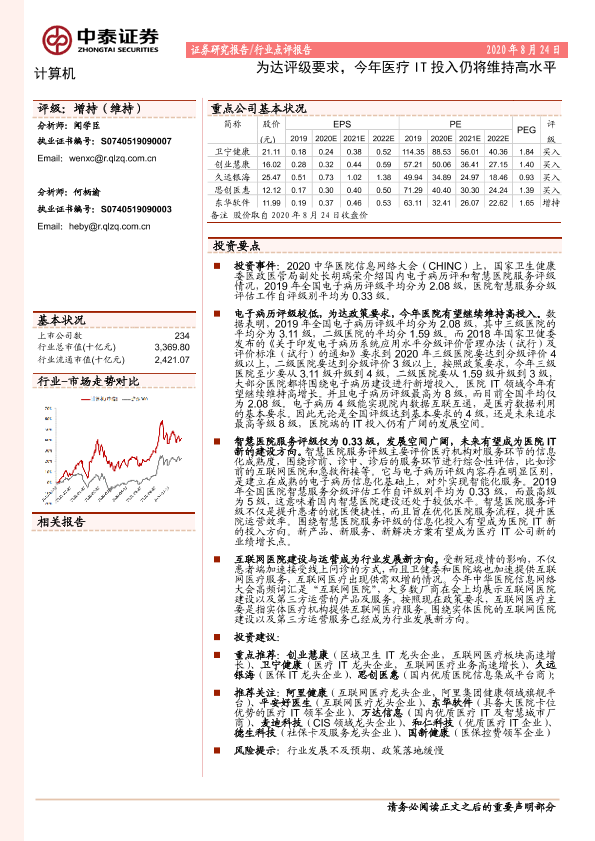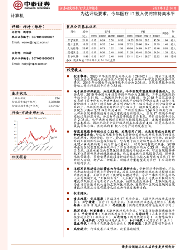 【中泰证券】【20200824】20200824-中泰证券-计算机行业点评报告:为达评级要求,今年医疗IT投入仍将维持高水平-2页