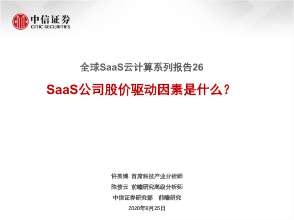 【中信证券】【20200825】全球SaaS云计算系列报告26:SaaS公司股价驱动因素是什么?-34页