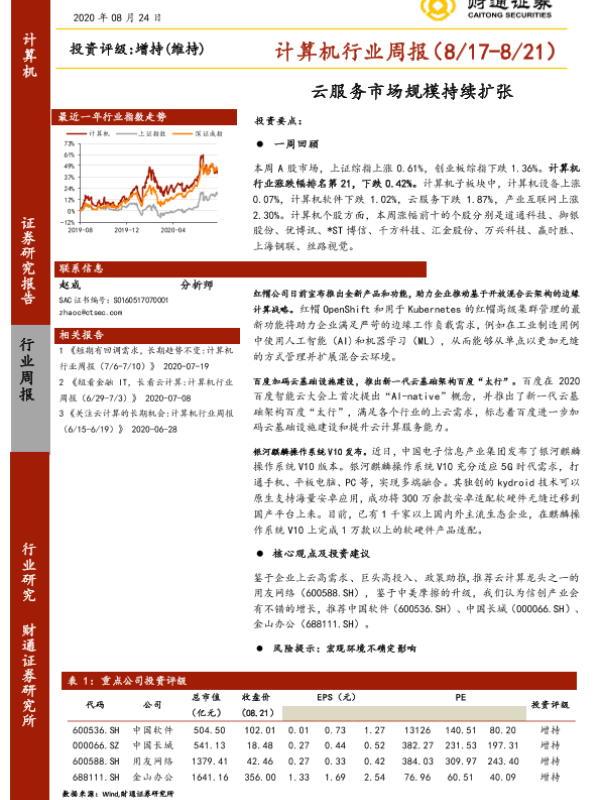 【财通证券】【20200824】计算机行业周报:云服务市场规模持续扩张-11页