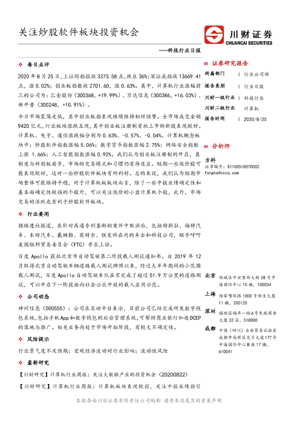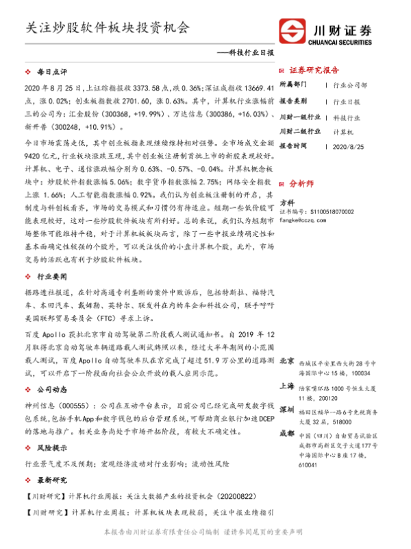 【川财证券】【20200825】科技行业日报:关注炒股软件板块投资机会-3页