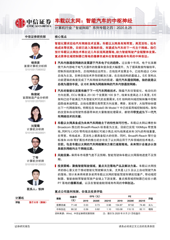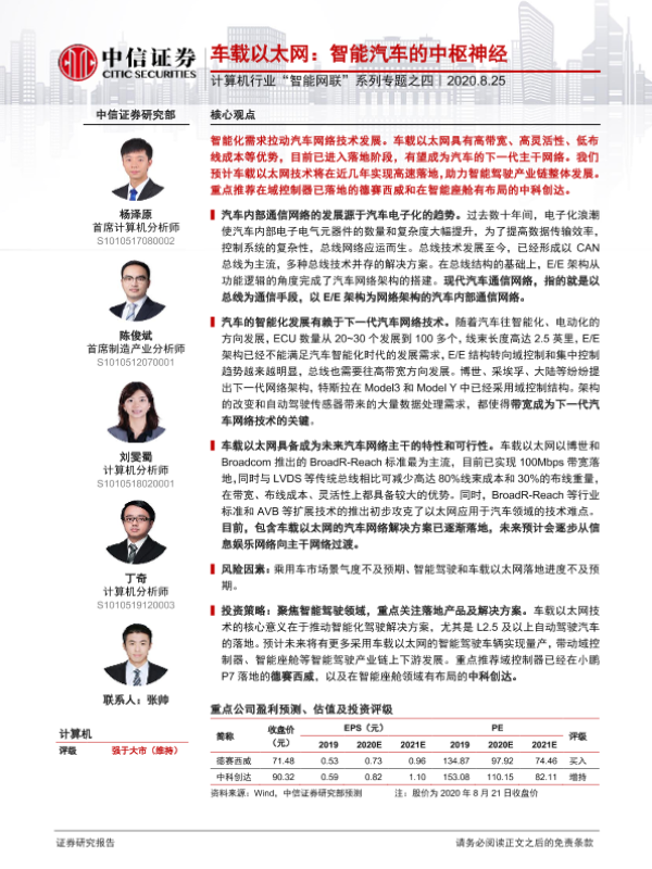 【中信证券】【20200825】车载以太网:智能汽车的中枢神经-12页