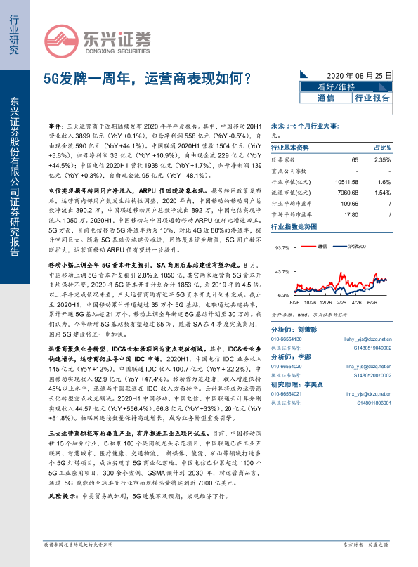 【东兴证券】【20200825】5G发牌一周年,运营商表现如何?-16页