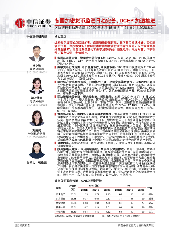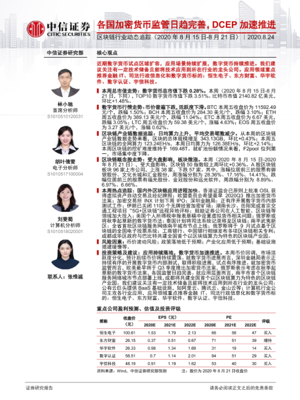 【中信证券】【20200824】区块链行业动态追踪:各国加密货币监管日趋完善,DCEP加速推进-18页