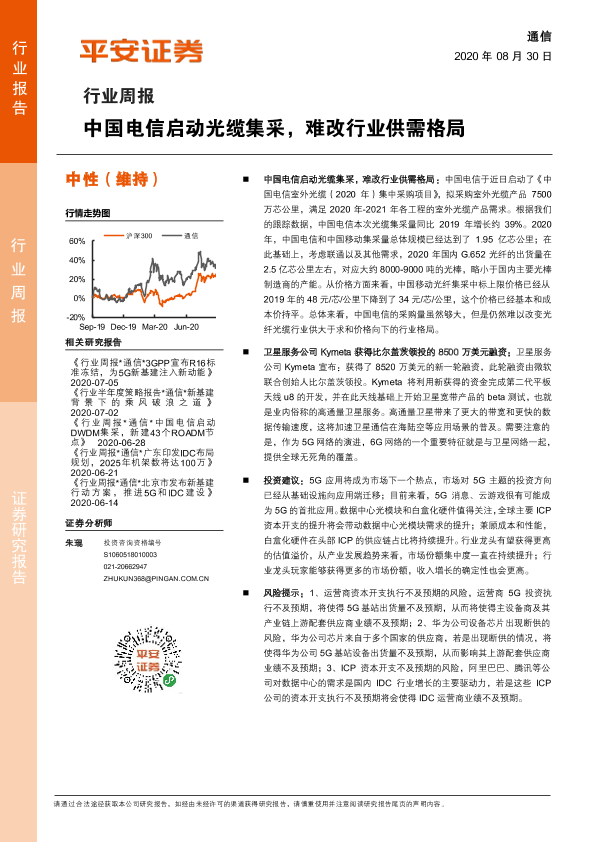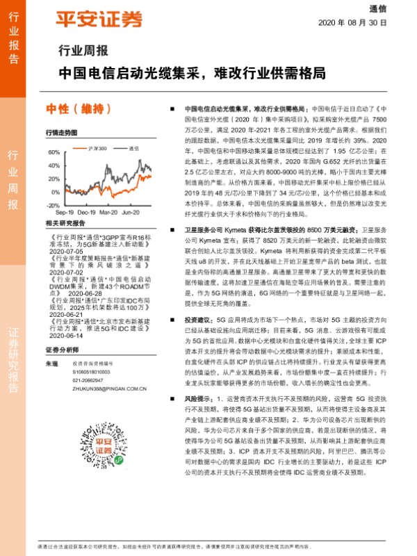 【平安证券】【20200830】通信行业周报:中国电信启动光缆集采,难改行业供需格局-5页