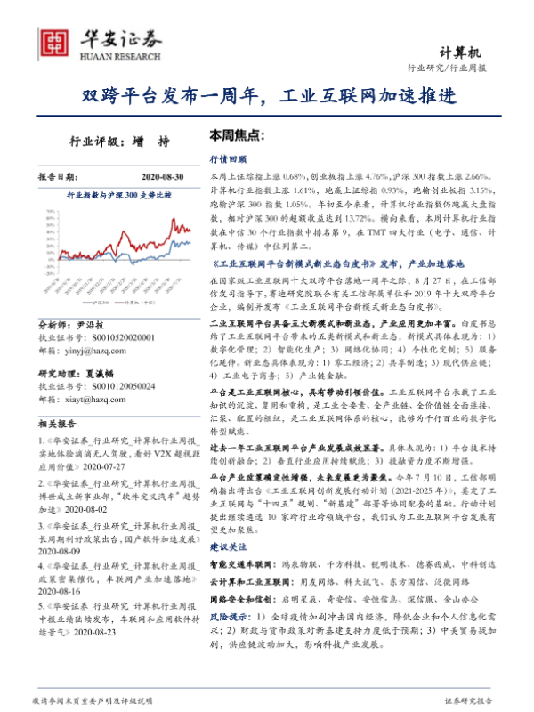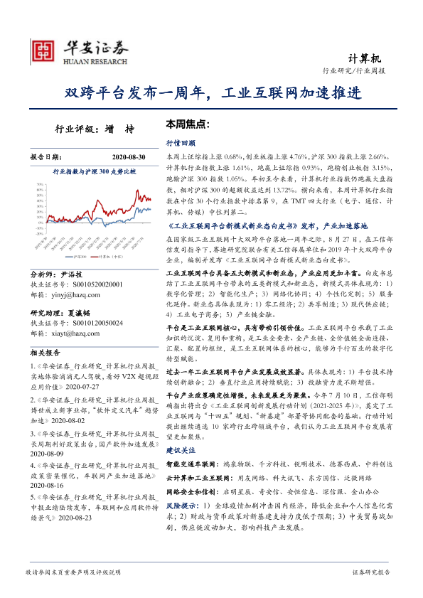 【华安证券】【20200830】20200830-华安证券-计算机行业周报:双跨平台发布一周年,工业互联网加速推进-15页